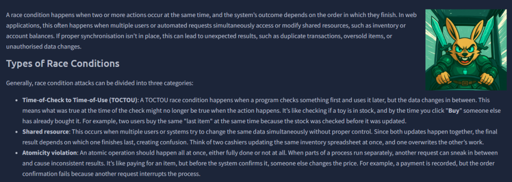 “Feel free to check out the Race Conditions room if you enjoyed this task.”
