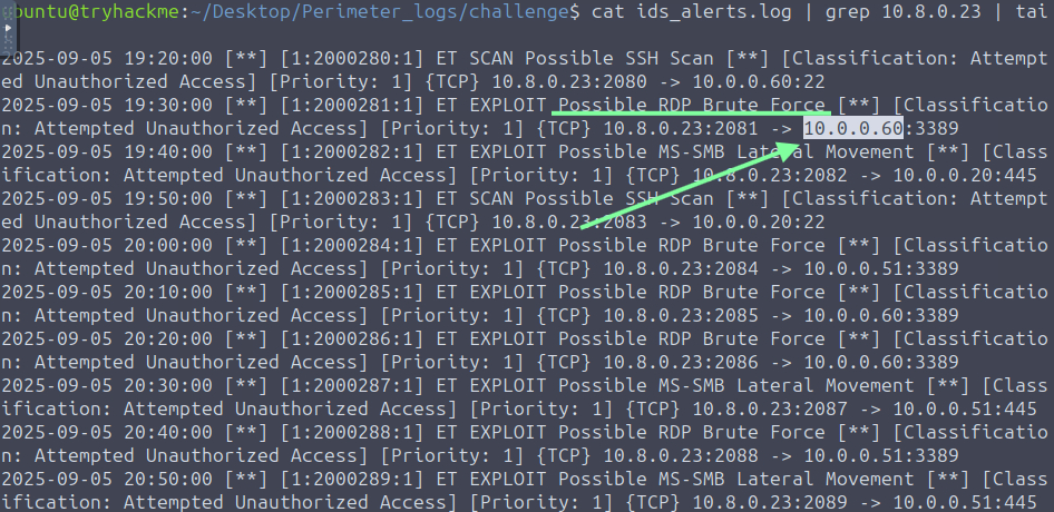 “Which port was used for lateral SMB attempts?”