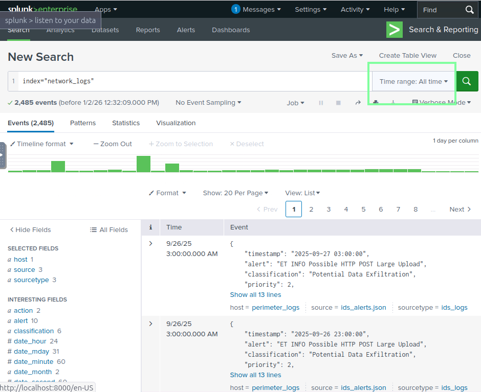 If you use Splunk, ensure that you change the Time range to ‘All time’, as it will not populate any results otherwise. This will be the case in future THM labs regarding Splunk, FYI.