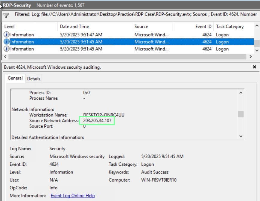 Task 3, Initial Access via RDP, goes over the risks of using RDP and the vulnerabilities that it presents. We will be using the RDP event logs for this task.