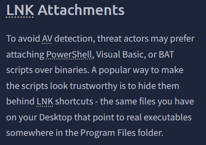 Per THM, “Files with a .lnk file extension refers to “link files” or “desktop shortcuts”. These files are often used to point to a file or folder from another location, making it convenient to access frequently used files and folders.”