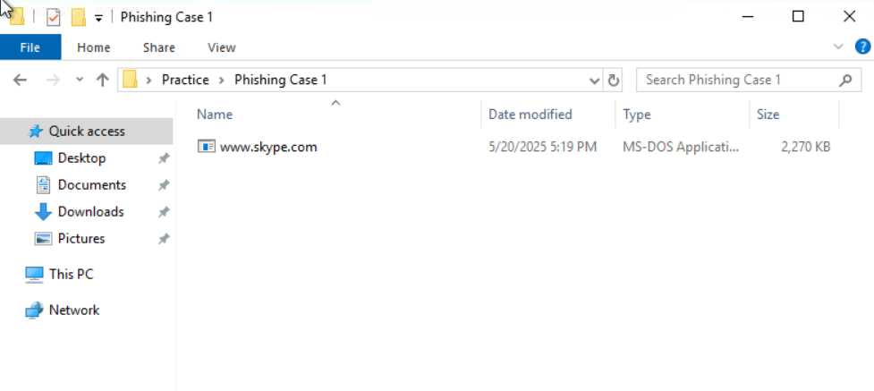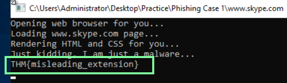 Run the www.skype.com file from the Phishing Case 1 folder, which flag do you get?”