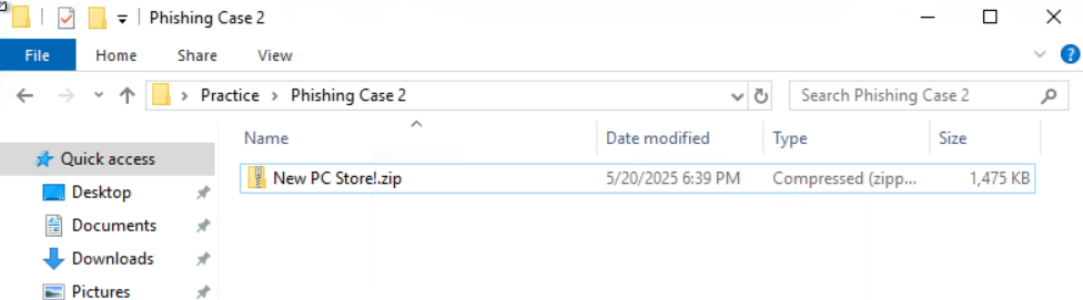 “Continue with the second attachment from the Phishing Case 2 folder.