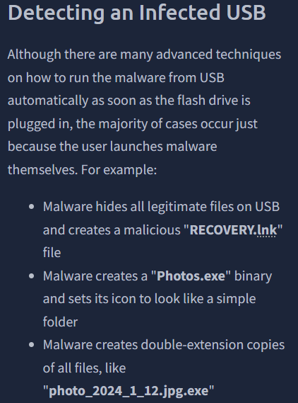 By now, we know of the social engineering attacks when it comes to USBs. Drop it in a parking lot, and a curious user picks it up, plugs it in, and voila, we have our attack entrance. However, how is one able to detect an infected USB?