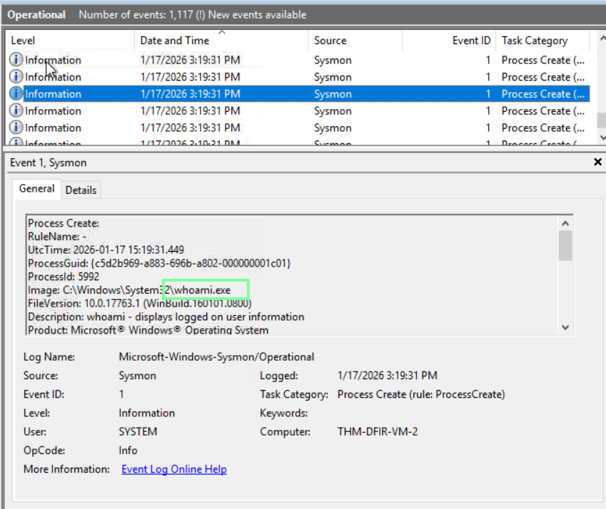 “Open Event Viewer and try to find your command in Sysmon logs.