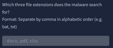 Format: Separate by comma in alphabetic order (e.g. bat, txt)”
