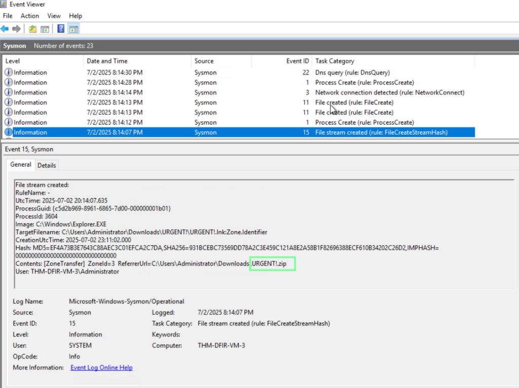 “Which suspicious archive did the user download?”
