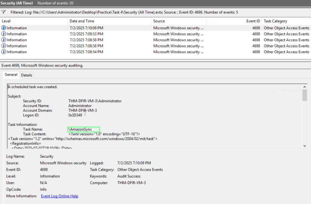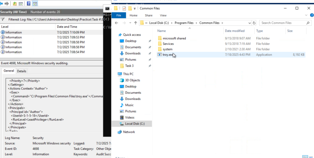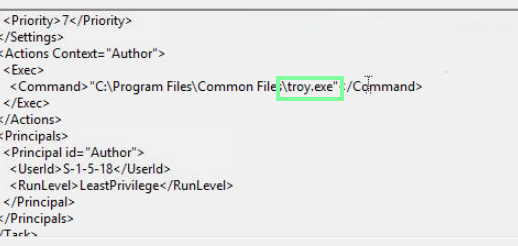 “Which scheduled task was created to persist the Troy malware?”