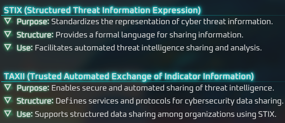 On to Task 4, CTI Standards and Frameworks! This room covers the MITRE ATT&CK framework , MITRE D3FEND, Cyber Kill Chain, CVEs, CVSS, and the NVD, STIX and TAXXII. With the help from Duck.ai here’s a simple bullet form of each: