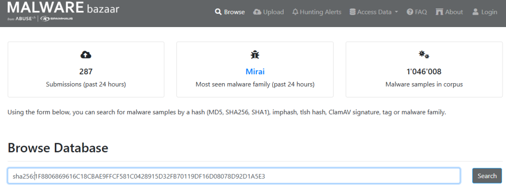 In Task 3, File Hask Lookup, we will be using Virustotal and Malwarebazaar.