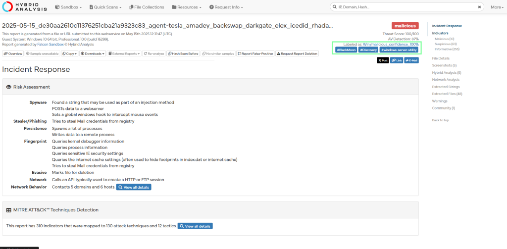 “What tags are used to identify the bl0gger.exe malicious file on Hybrid Analysis? (Answer: Tag1, Tag2, Tag3)”