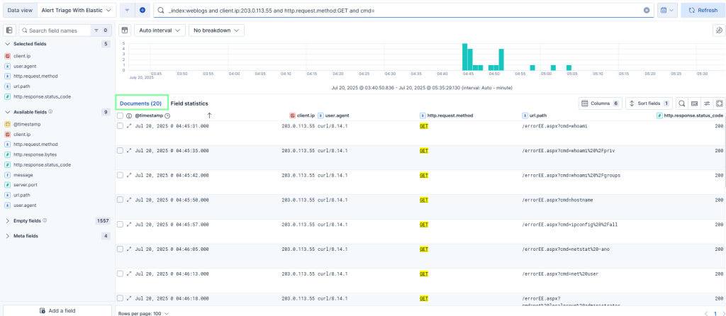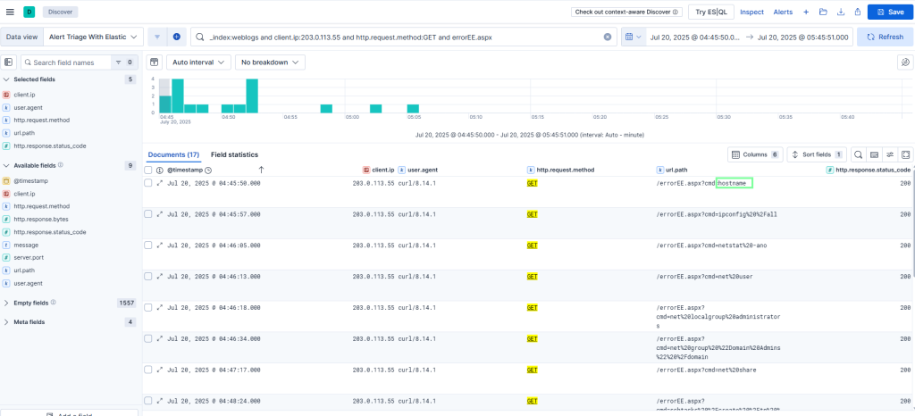 “Which command was run utilizing errorEE.aspx on Jul 20, 2025 @ 04:45:50.000?”