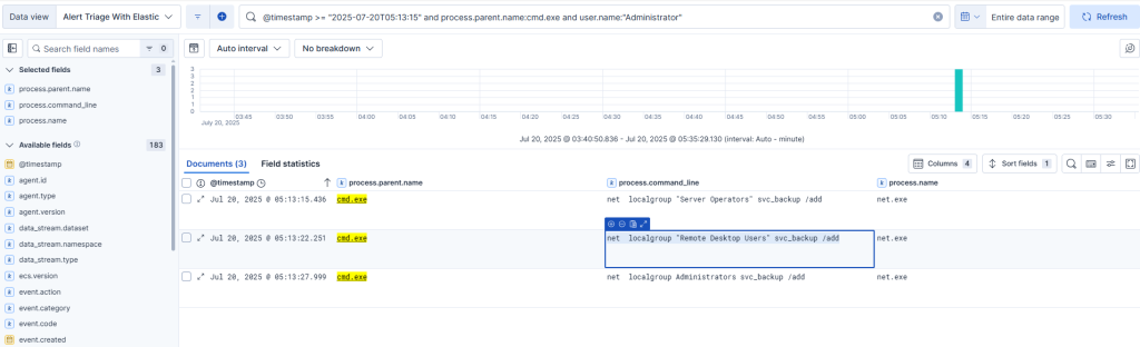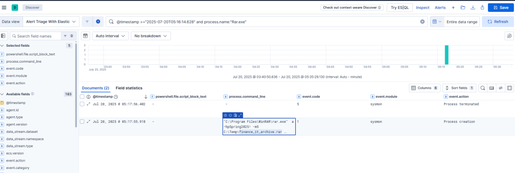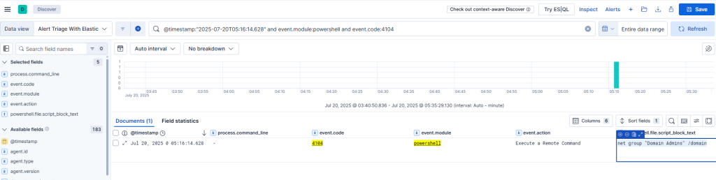 “What PowerShell command did the attacker run on Jul 20, 2025 @ 05:16:14.628?”