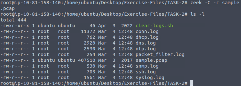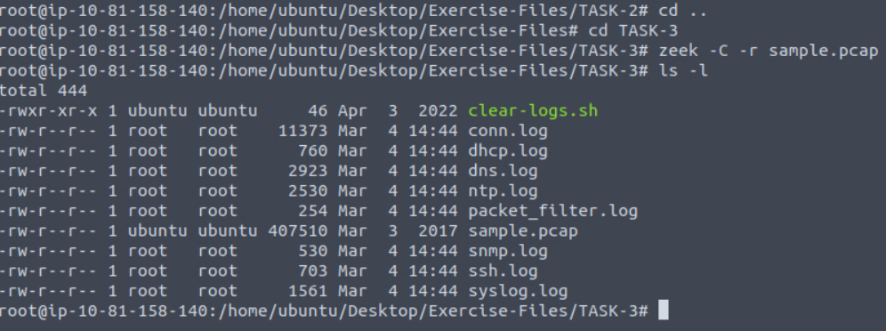 “Each exercise has a folder. Ensure you are in the right directory to find the pcap file and accompanying files. Desktop/Exercise-Files/TASK-3 “”