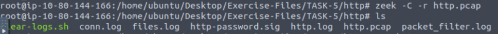 “Each exercise has a folder. Ensure you are in the right directory to find the pcap file and accompanying files. Desktop/Exercise-Files/TASK-5 “”