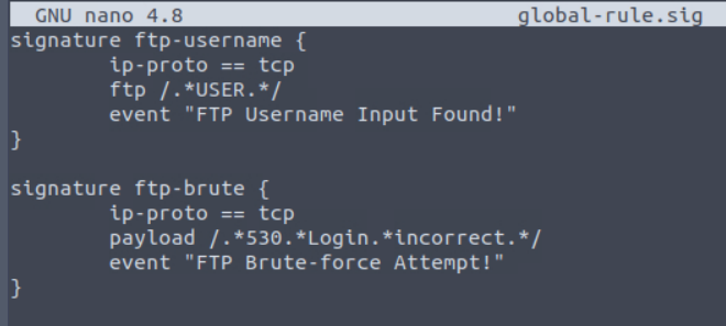 “Create the global rule shown in the task and investigate the ftp.pcap file.