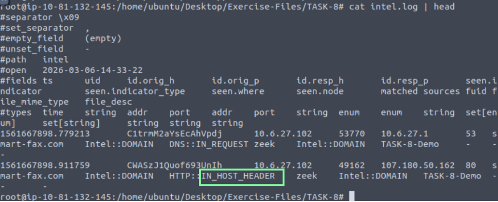 “Each exercise has a folder. Ensure you are in the right directory to find the pcap file and accompanying files. Desktop/Exercise-Files/TASK-8“